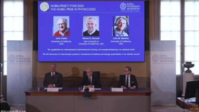 সুইডেনের রাজধানী স্টকহোমে বাংলাদেশ সময় মঙ্গলবার বিকেলে পদার্থ বিজ্ঞানে এ বছরের নোবেল পুরস্কার ঘোষণা করে রয়েল সুইডিস অ্যাকাডেমি অব সায়েন্সেস। রয়্যাল সুইডিশ একাডেমি অব সায়েন্সেস জানিয়েছে, বৈদ্যুতিক সার্কিটে ‘ম্যাক্রোস্কোপিক কোয়ান্টাম মেকানিক্যাল টানেলিং’ এবং ‘এনার্জি কোয়ান্টাইজেশন’-এর যুগান্তকারী আবিষ্কারের জন্য এ বছর তাদের এই পুরস্কারে ভূষিত করা হয়েছে।