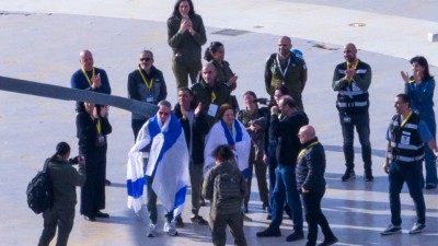 এই মুক্তি প্রক্রিয়া চলাকালেই ট্রাম্প সোমবার সকালে এয়ার ফোর্স ওয়ানে করে ইসরাইলে অবতরণ করেন। বেন গুরিওন বিমানবন্দরে ট্রাম্পকে লালগালিচা সংবর্ধনা দেন ইসরাইলের প্রধানমন্ত্রী বেনিয়ামিন নেতানিয়াহু ও প্রেসিডেন্ট আইজ্যাক হারজগ।