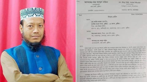 গতকাল বুধবার হৃদয় হাসানের পক্ষে কুষ্টিয়া আদালতের আইনজীবী আব্দুল মজিদ নোটিশটি পাঠান।