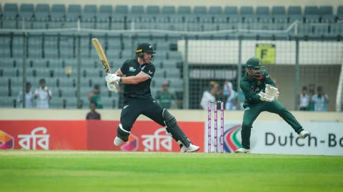 নতুন ব্যাটার হিসেবে ক্রিজে এসে বেশিক্ষণ টিকতে পারেননি নিউজিল্যান্ড অধিনায়ক টম লাথাম। বাংলাদেশ অধিনায়ক মেহেদী হাসান মিরাজের বলে বোল্ড হওয়ার আগে ২টি চারে ১৪ রান করেন লাথাম।