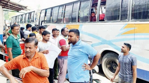 রাজশাহী ও নাটোরের বাস মালিকদের দ্বন্দ্বের জেরে হঠাৎ করেই বন্ধ করে দেওয়া হয় বাস। এতে রাজশাহীর সঙ্গে সারাদেশের সড়ক যোগাযোগ কার্যত অচল হয়ে পড়েছে। রাজশাহী কেন্দ্রীয় বাস টার্মিনাল ঘুরে দেখা গেছে, যাত্রীরা ঘণ্টার পর ঘণ্টা অপেক্ষা করেও কোনো বাস পাচ্ছেন না। কেউ বিকল্প হিসেবে সিএনজি বা ভাড়ায়চালিত গাড়িতে অতিরিক্ত টাকা দিয়ে গন্তব্যে যাওয়ার চেষ্টা করছেন, আবার অনেকে বাধ্য হয়ে বাড়ি ফিরে যাচ্ছেন।